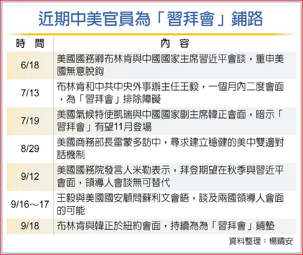另一方面,中國國家副主席韓正已前往紐約出席第78屆聯合國大會。美國國務院公布,布林肯於美東時間18日與中國國家副主席韓正會面,有望進一步為「習拜會」鋪路。