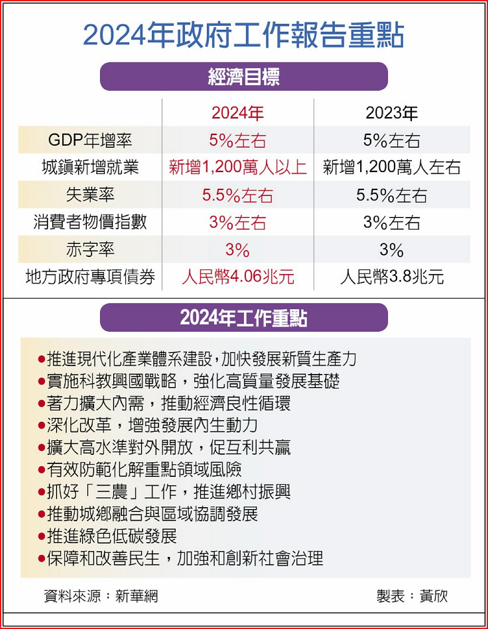 ING銀行大中華區首席經濟師宋林表示,GDP增長目標再次定為5%左右並不令人意外,因為降低目標會進一步削弱信心。