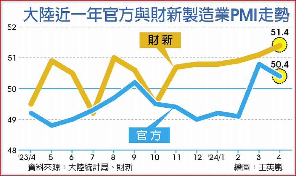 陸4月製造業PMI 優於預期 但仍面臨需求不足問題