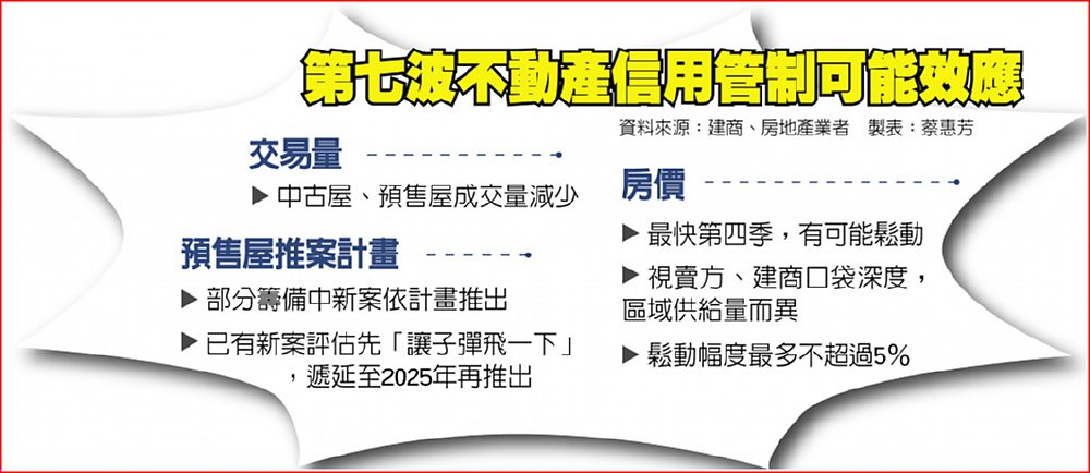 央行第七波打炒房政策來勢洶洶,不但中古屋市場首當其衝,也牽動預售屋市場的人氣、買氣,進而影響建商推案布局。有建商表示,面對這波新的央行政策,會不會如期推出新案?仍需再觀察。