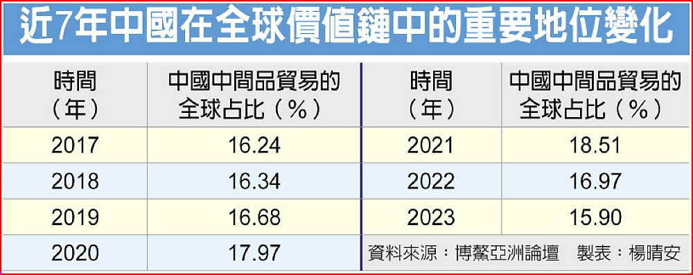 數據顯示,2023年亞洲在全球中間品貿易的占比為41.17%,遠超歐盟的25.5%和北美的15.12%。其中,全球中間品貿易對中國的依存度近16%。