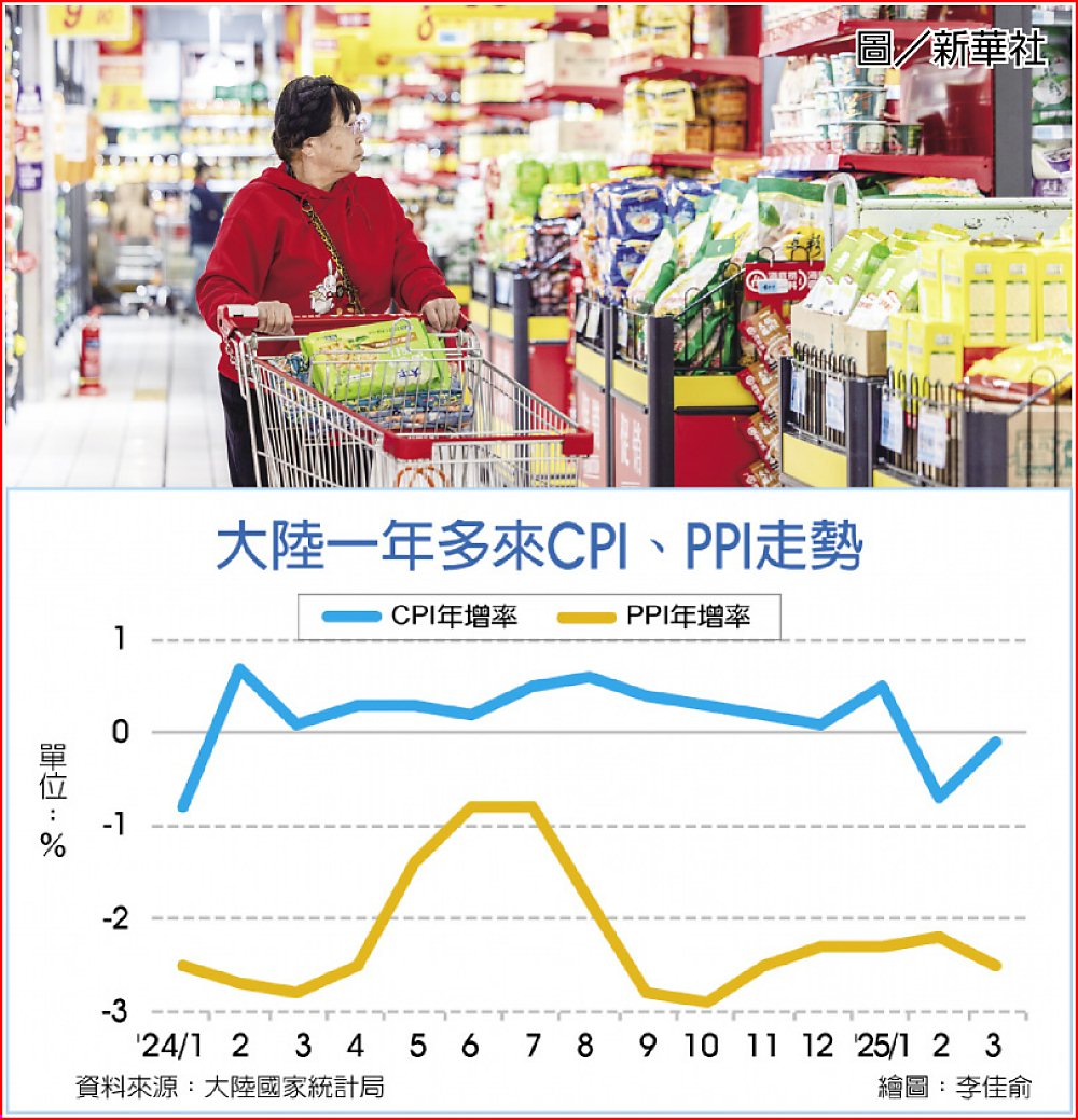 中美關稅戰戰火延燒,除了衝擊全球經濟增長,包括國際貨幣基金(IMF)等多家機構更提出警告,中國的通縮壓力恐將因此加劇,預估今年消費者物價指數(CPI)年增率恐降為0%,遠低於全年2%左右的目標。