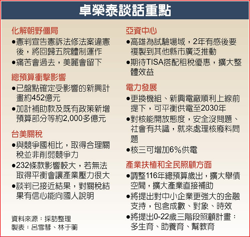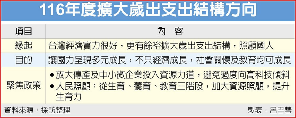 卓揆:116年擬擴大歲出支出結構