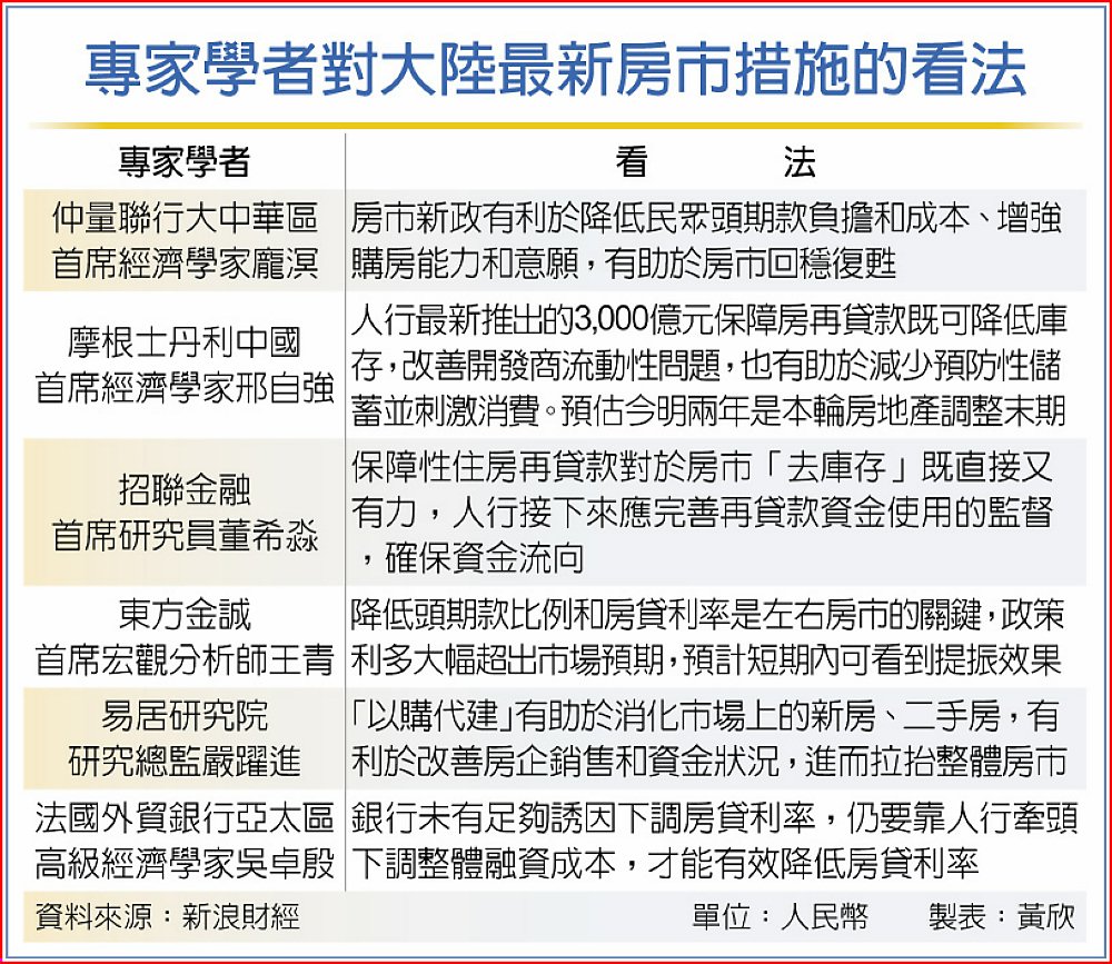 報導引述專家指出,新措施不僅擴大和延續前期政策方向,更提高金融支持力度。分析認為,隨著經濟恢復態勢不斷增強,房地產市場供求關係出現變化,從推動房貸利率市場化的角度看,當前不失為較好的時間點。